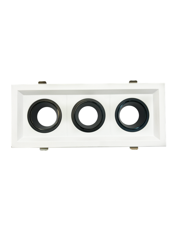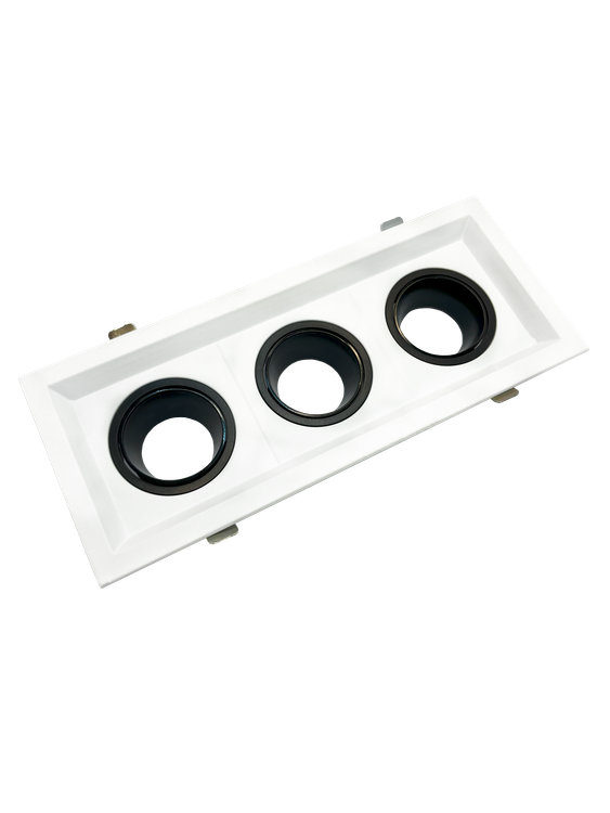 اب هالوژن مربع سهتایی مشکی–سفید با طراحی مدرن و بدنه آلومینیومی مقاوم، انتخابی ایدهآل برای فضاهایی است که نیاز به نورپردازی یکنواخت و خطی دارند. این مدل دارای سه جایگاه مجزا برای لامپ بوده و امکان تنظیم زاویه تابش هر لامپ را بهصورت مستقل فراهم میکند. ترکیب رنگ سفید بدنه با رینگ داخلی مشکی، جلوهای لوکس و مینیمال به دکوراسیون میبخشد.